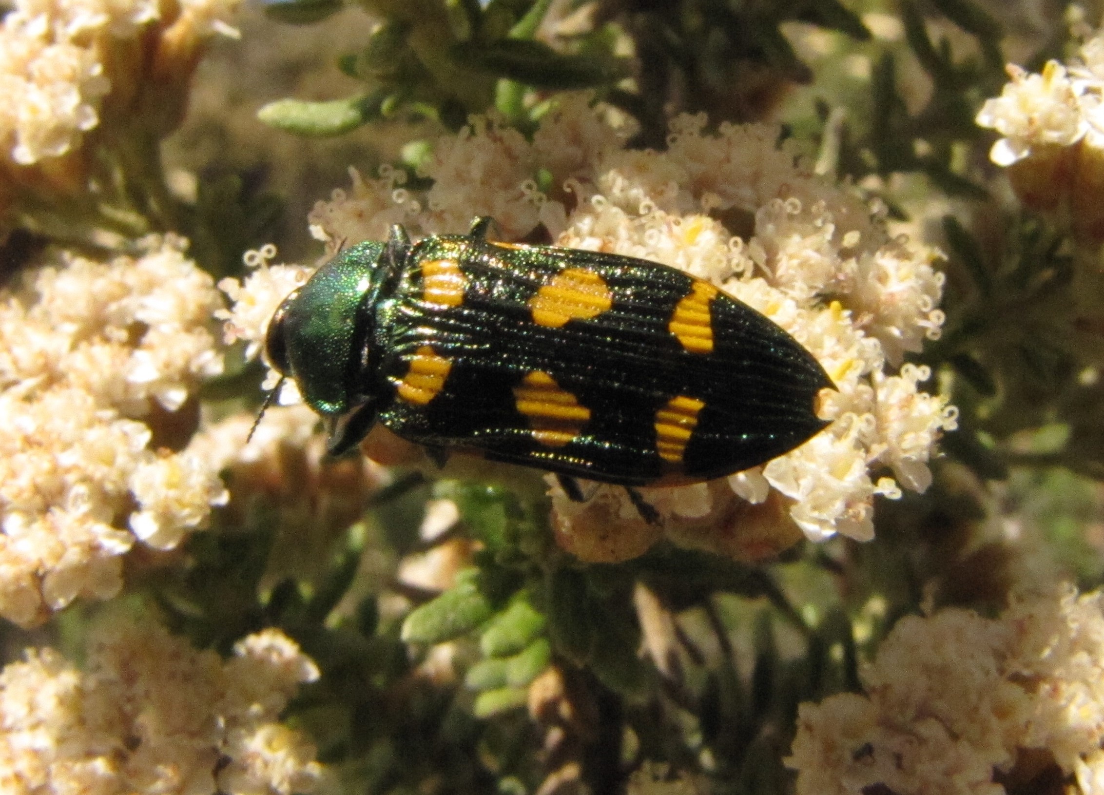 Castiarina insculpta, the Miena Jewel beetle on its host plant Ozothamnus hookeri