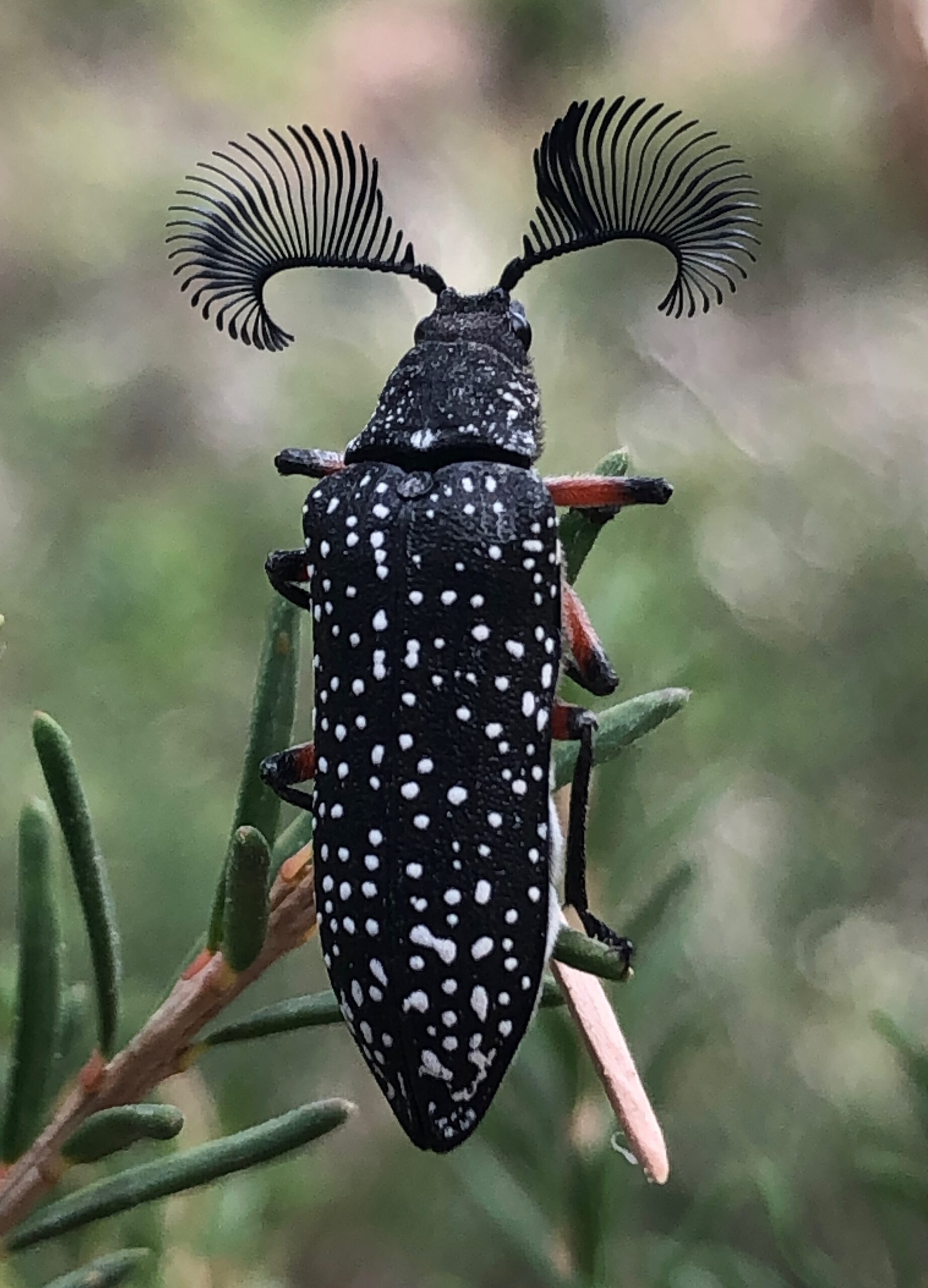 Meanwhile, the group of twelve field nats  headed off behind the dunes through some dense thickets of paperbark, looking out for the Spikey violet bush – Melicytus dentatus. On their climb up Archers Knob, a short steep section, they were looking for the Small leafed clematis – Clematis microphylla and the Slender velvet bush – Lasiopetalum baueri. This one found only in a couple of places on the N. Coast, Narawntapu being the main location.