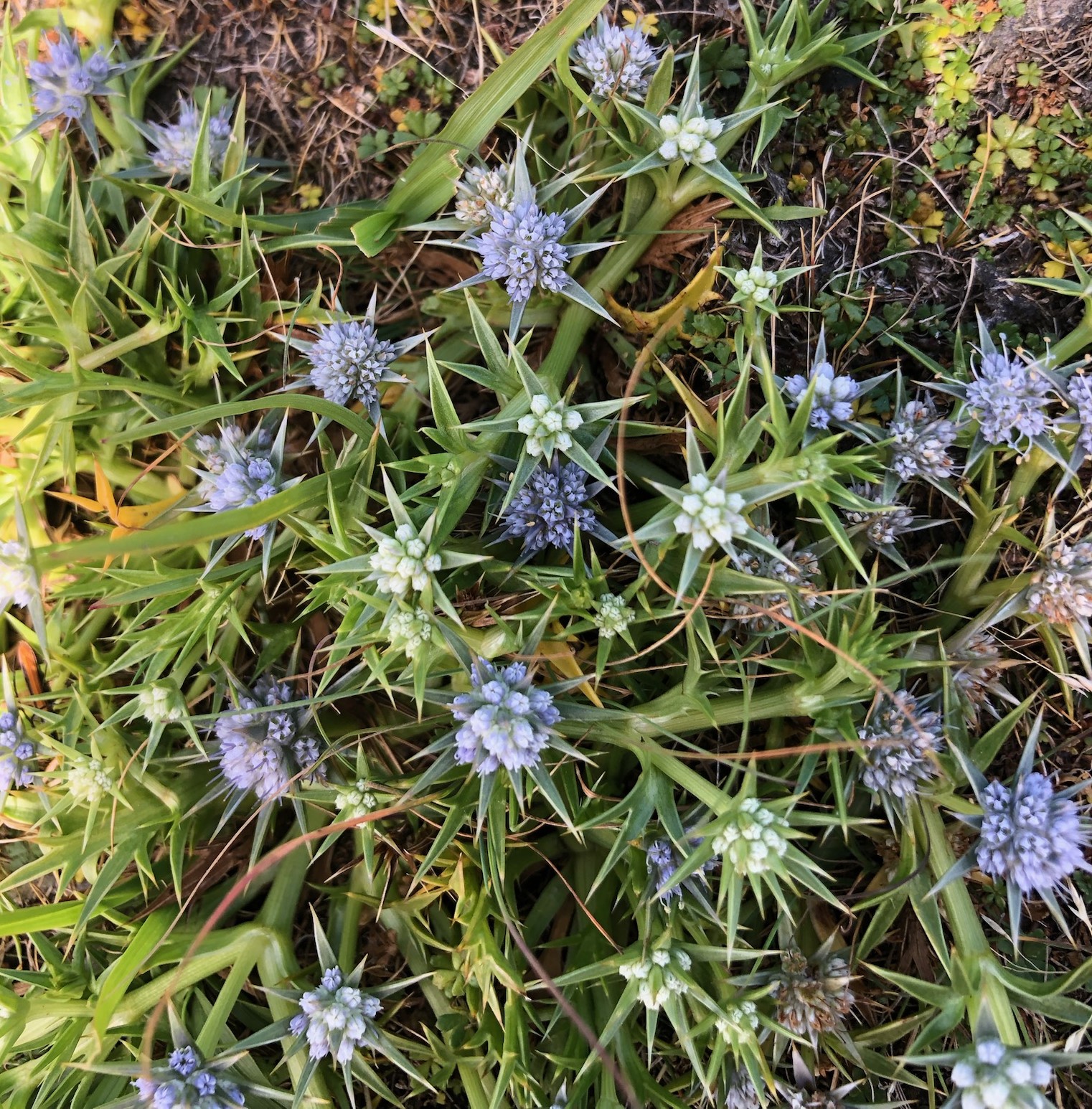 The top of Archers Knob was a fantastic place to stop for lunch. Look at the view below with Springlawn in the middle foreground. The return track skirts around the back of the lagoon, a large marsupial lawn with an abundance of interesting plants like the Prickfoot [real name] – Eryngium vesiculosum, Swamp native primrose – Goodenia graminifolia and the Swamp mazus – Mazus pumilio.