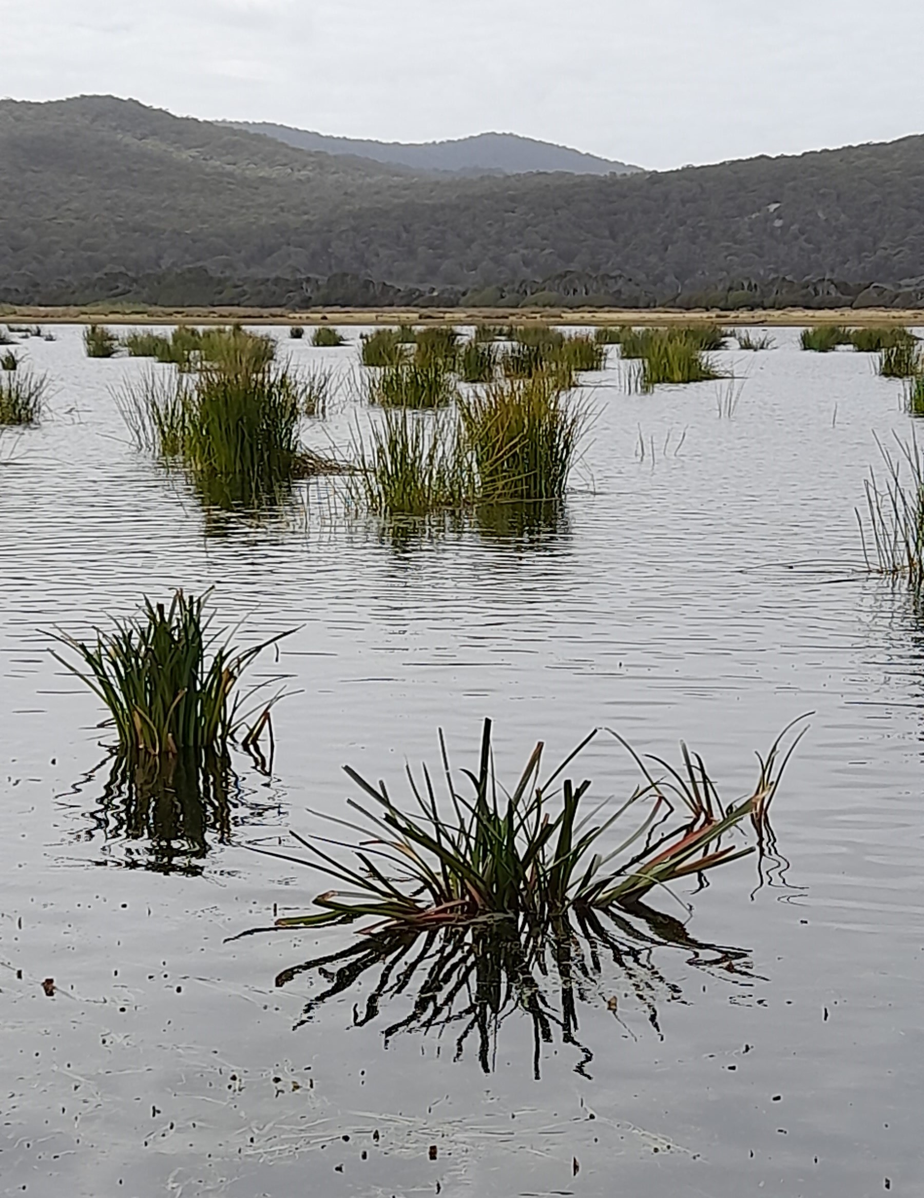 The outing to Narawntapu National Park near the Asbestos Range west of the Tamar River took in the Bird Hide at Springlawn, and Archers Knob. The first section heading towards the bird hide showed serious signs of drying out of undergrowth and neglect with many thistles prevalent. Imagine our surprise when we entered the bird hide and saw a couple of hectares of fresh water vegetated with healthy clumps of the Spike sedge – Eleocharis sp. and Water ribbons – Triglochin sp.