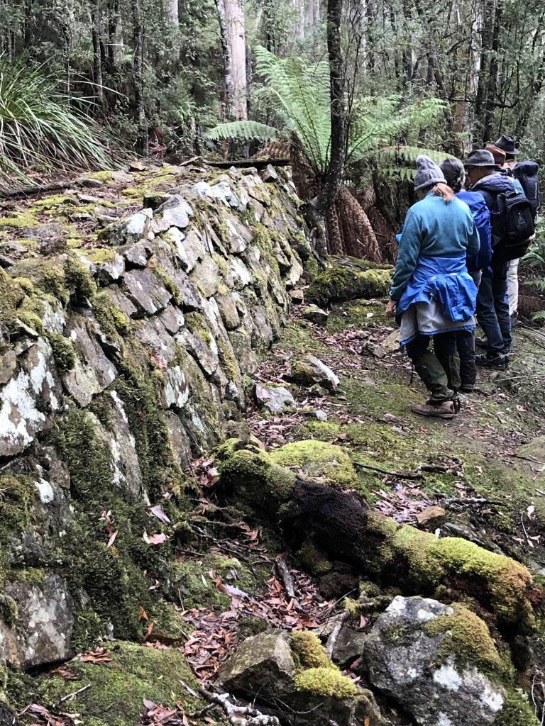 The walk was mainly on top of the race walls, and almost flat, dropping only 4 feet (1.2 meters) per mile (1.6 kms), as the water of the race had to drop minimally on its downhill flow to the mine at Derby, a distance of 20 miles (32 kms) from the Ringarooma intake.