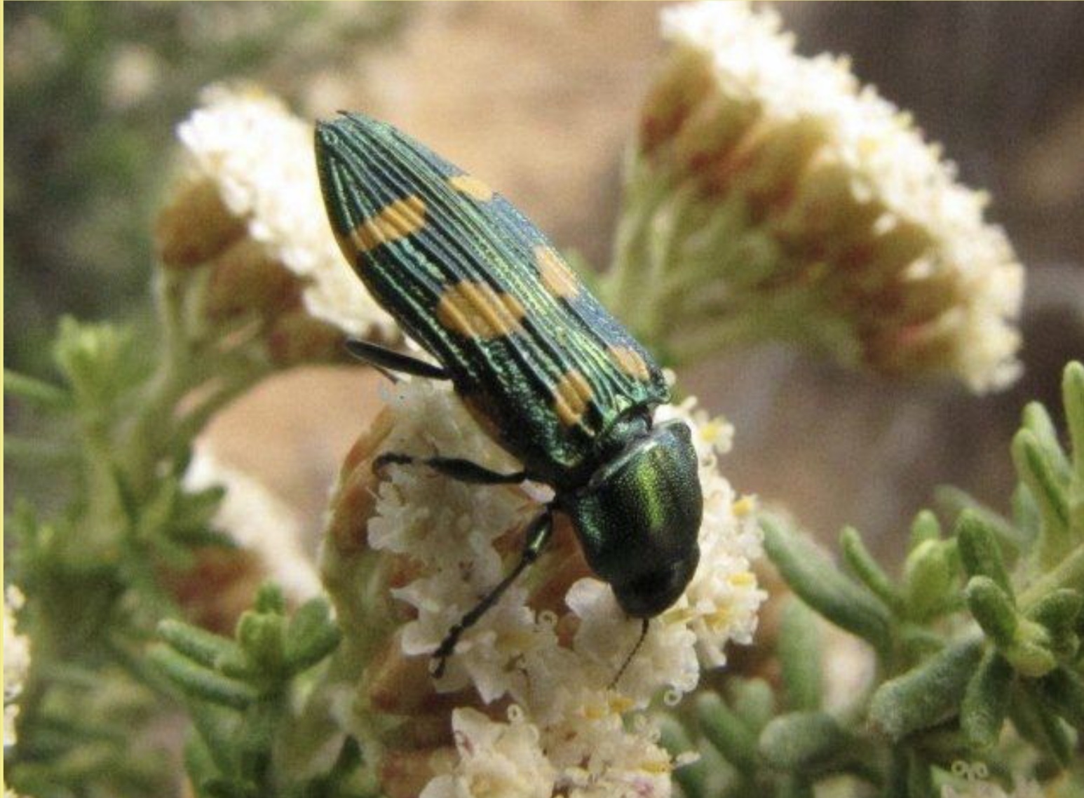 Castiarina insculpta, the Miena Jewel beetle on its host plant Ozothamnus hookeri