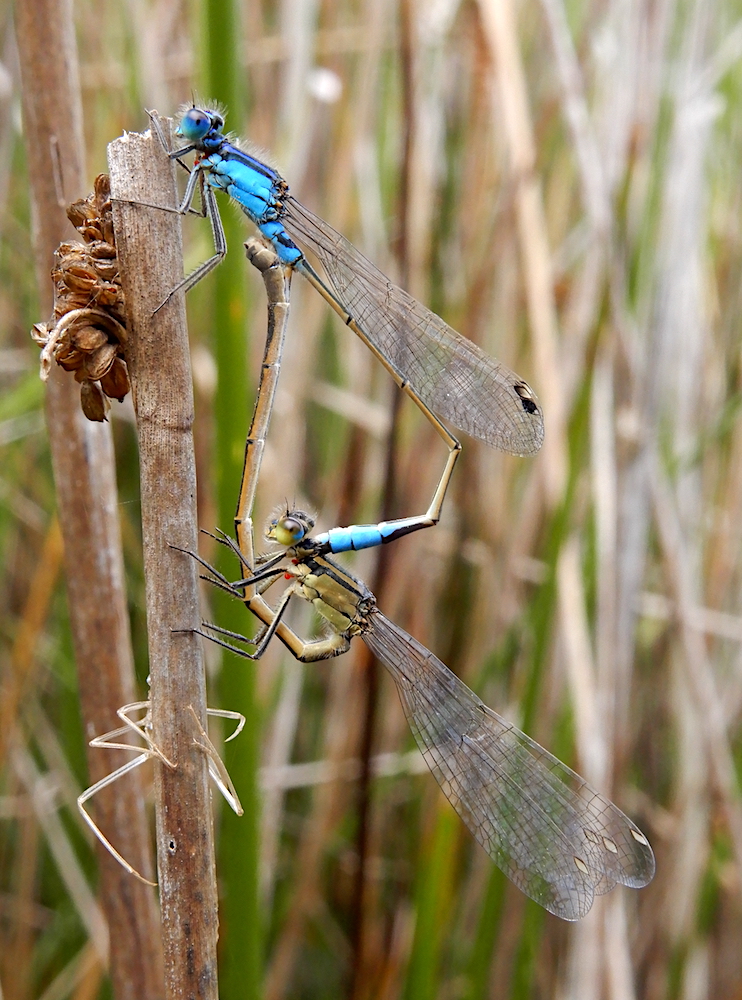 Common Bluetail Damselflies in second stage of the mating process – Ischnura heterosticta (RC)
