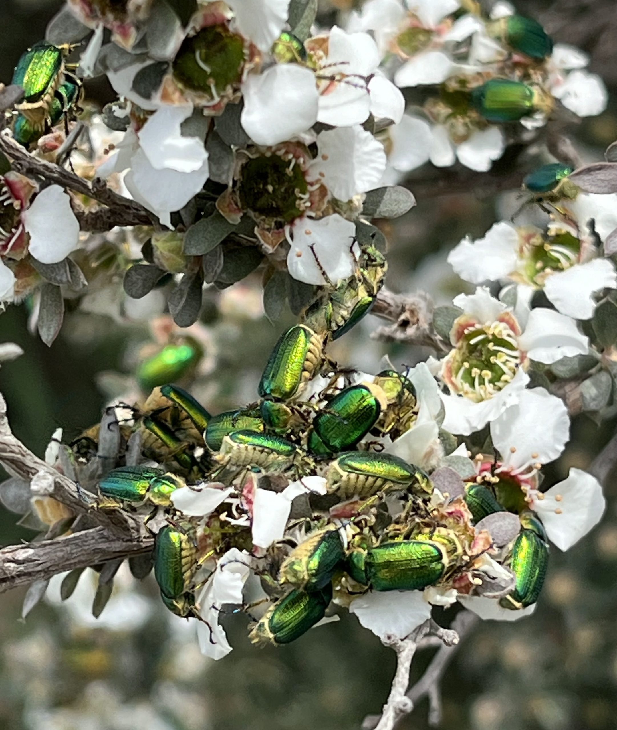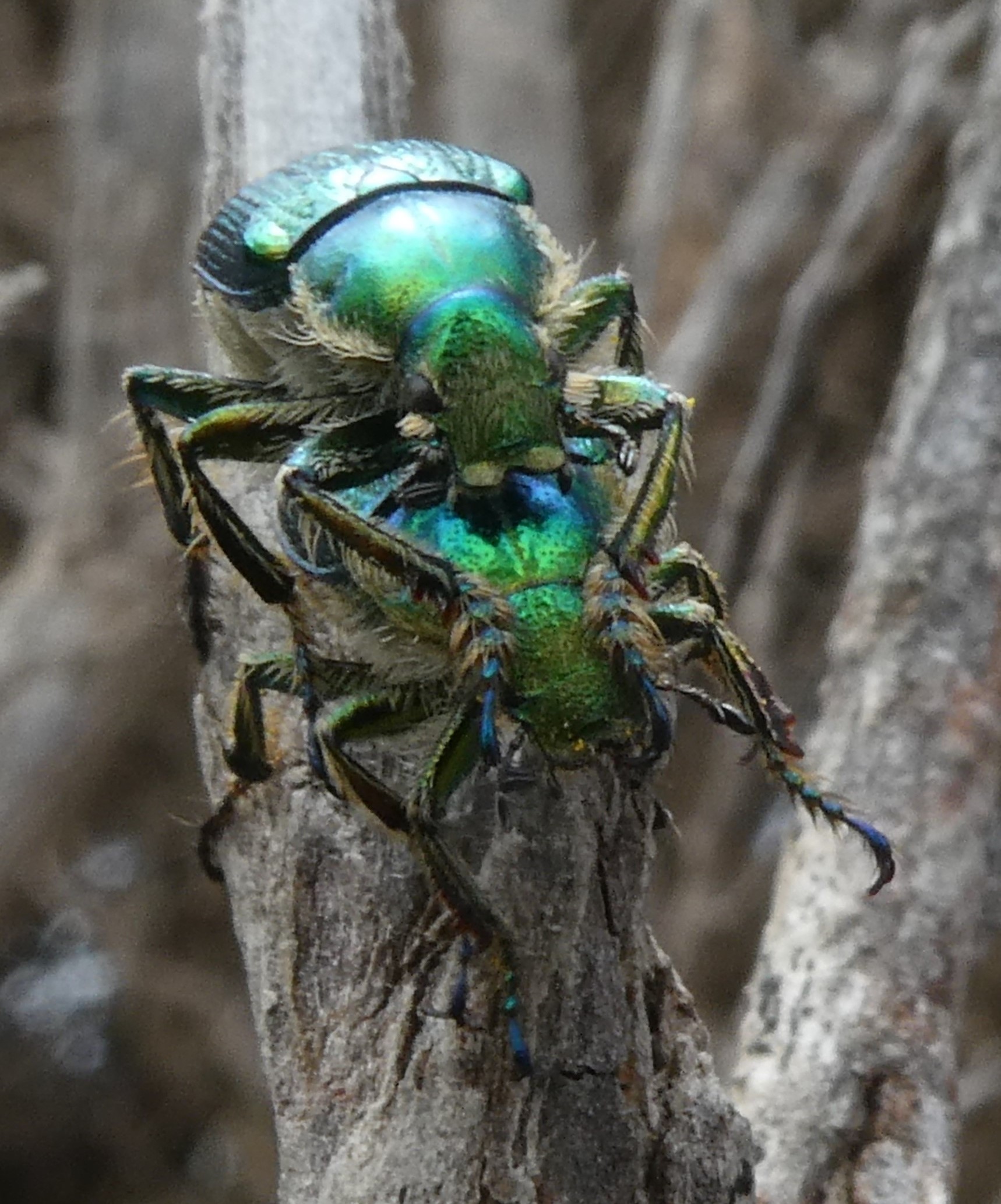 Green scarab beetles, Diphucephla colaspidoides (LB)
