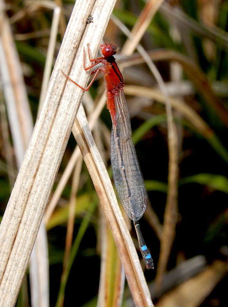Red and Blue Damselfly – Xanthagrion erythroneurum seen at Four Springs Lake (RC)