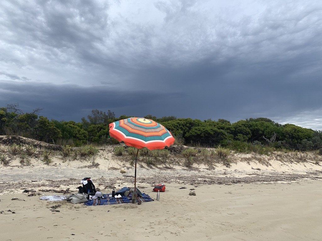 Further east beyond the boat ramp is a wider sweep of Ringarooma Bay, and you can walk for about 5kms along the shore to the first rocky outcrop. There are lots of seabirds on this stretch of beach. The Furneaux islands can be seen on a clear day. From the top of thie outcrop you’ll see numerous coves, and have a fine view further around the bay, past the outlet of the Ringarooma River at Boobyalla, to Cape Portland.