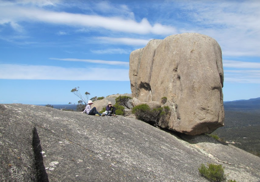 Mt William rises above a plain which is near the north-east coast and contains heathland vegetation, grass trees Xanthorrhoea and black peppermint Eucalyptus amygdalina. Little is left of Tasmania’s heathland now, so reserves like these are precious. Heath is found on poorer soils such as those here, which result from weathered granite and wind-blown sand.