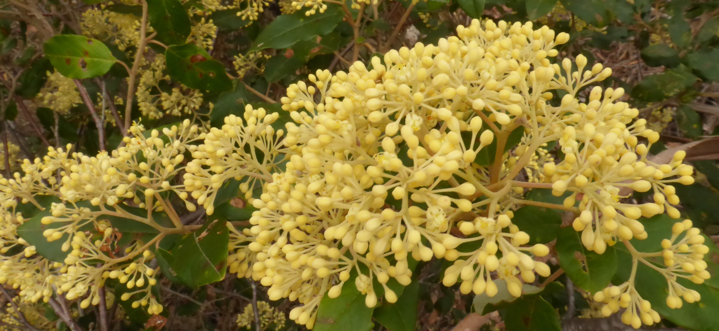 Pomaderris eliptica in bud, Mt Cameron (LB)